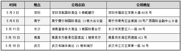 附:南线站点会议日程安排表(每站会议时间为:13:30-17:00,13:00开始签到):