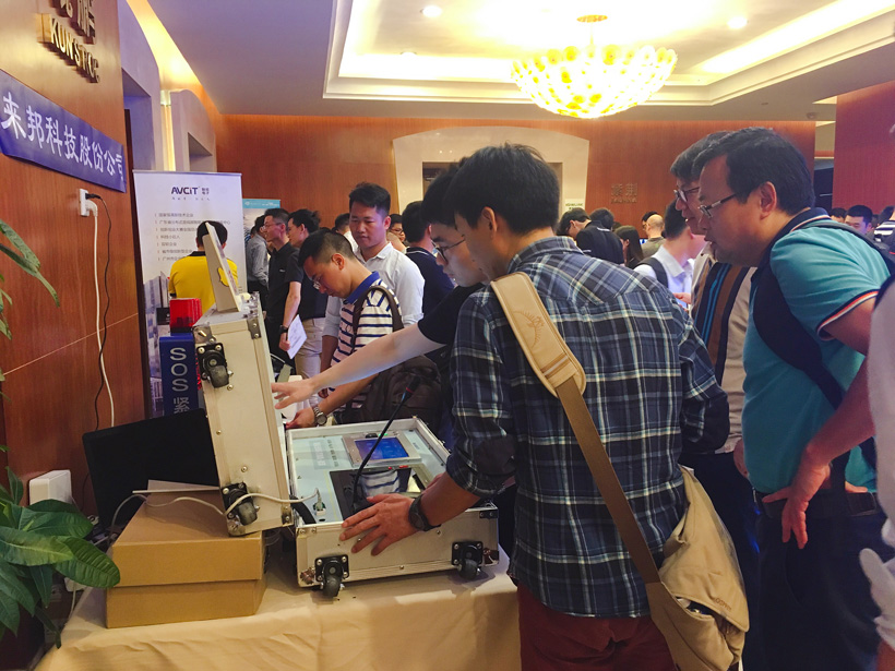 产品展示区域,bbin宝盈科技集中展示了以“雪亮工程指挥调度系统”为主的新产品,吸引了大批参会游客了解观看。