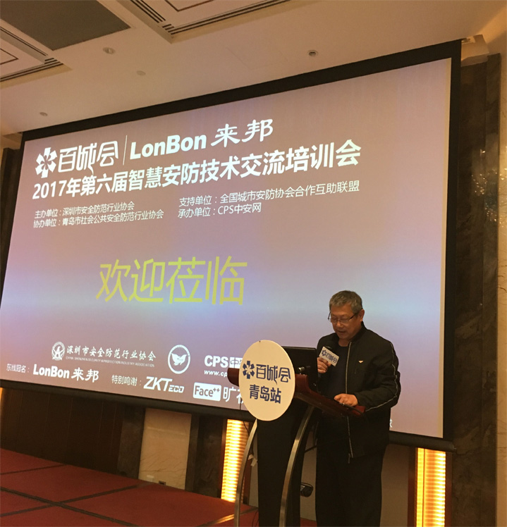 新闻中心5月5日下午,2017年第六届百城会·智慧安防技术交流培训会的第五站:青岛,在青岛颐海花园酒店隆重举行。青岛市公安局科技处调研员赵俭,青岛市公共安全防范行业协会副理事长王建中共同出席会议并致辞。来自青岛及周边城市的集成商、工程商、经销代理商及行业用户参加了培训会,一起相互交流与学习安防行业的发展和变革。