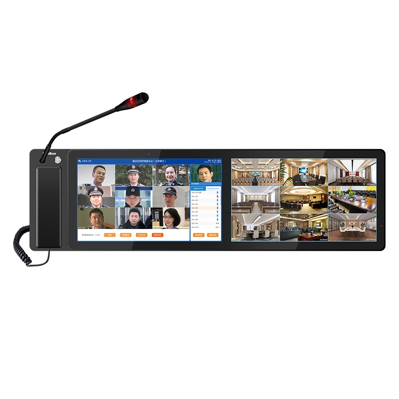 ? 硬质铝合金外壳,CNC加工,双屏一体化设计;15.6英寸触摸显示屏,1080P高清视频,桌面式安装。