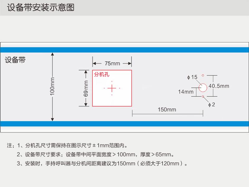 注意事项:安装时,手持呼叫器与分机间距需保持≥15cm。